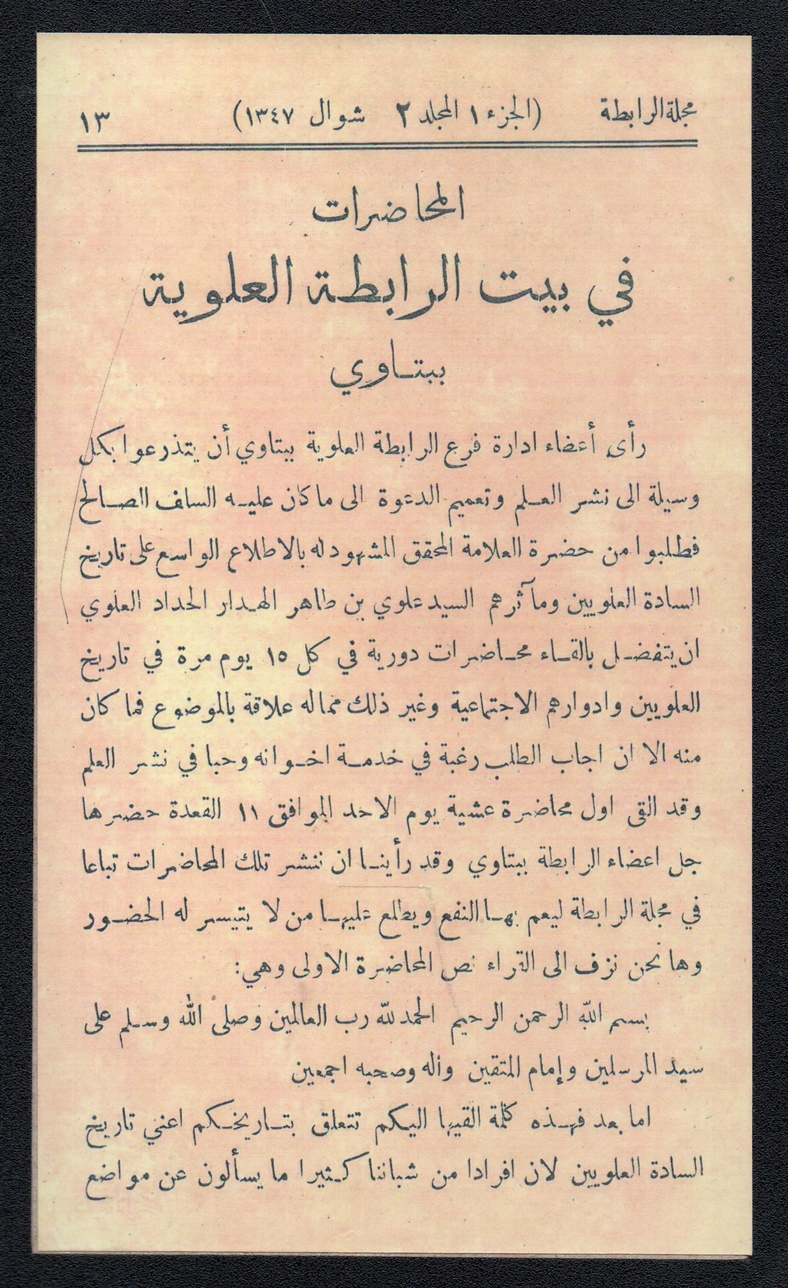 المحاضرات في بيت الرابطة العلوية ببتاوي